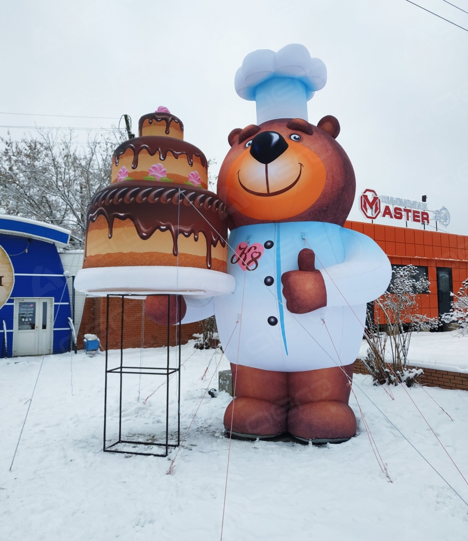 - Мобильность. Сезонные праздники скоротечны. Монтаж надувных фигур занимает от 15 минут до пары часов. Это критически важно, когда нужно быстро оформить площадку к Масленице или Дню города и так же быстро все убрать.